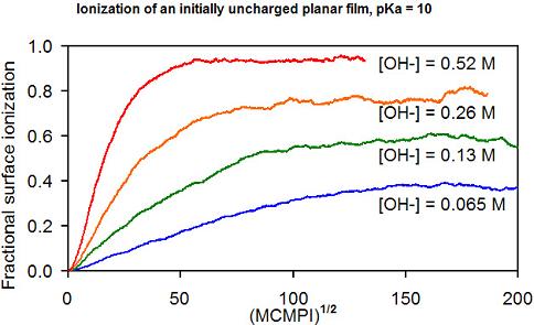 ions from the charged surface. This depletion of base can greatly affect